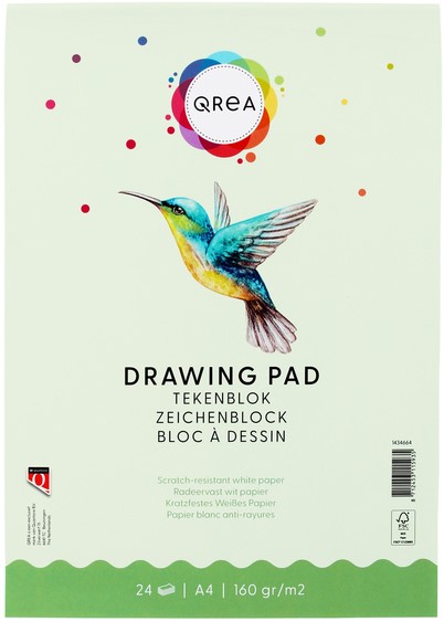 Ontketen jouw creativiteit met het Tekenblok Qrea A4, perfect voor gedetailleerde en professionele tekeningen. Het 160 grams radeervaste papier biedt een stevige basis voor jouw potlood- en penkunstwerken, zonder dat het papier beschadigt tijdens het gummen. Dankzij de gelijmde bindwijze scheur je eenvoudig pagina's uit zonder het blok te beschadigen. De harde kartonnen achterkant zorgt voor stabiliteit, zelfs als je onderweg aan je kunst werkt. Dit tekenblok is FSC-gecertificeerd, zodat je met een gerust hart een duurzame keuze maakt. Verkrijgbaar in diverse maten om aan al je creatieve wensen te voldoen. Kenmerken: