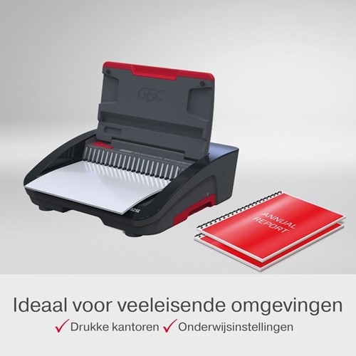 Bindt maximaal 450 vellen (80 grams) per keer met een inbindrug van 45mm.