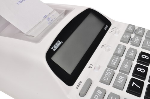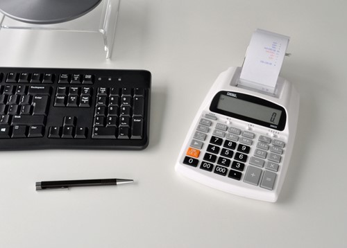 Rekenmachine met telrol voor semi-professioneel gebruik. Werkt met AC-adapter (meegeleverd) of op batterijen. Met twee papierhouder-opties: in de rekenmachine (handig bij mobiel gebruiken) of buiten de rekenmachine.