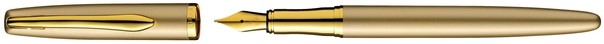 De gepolijste, roestvrijstalen penpunt is in M (medium) breedte.