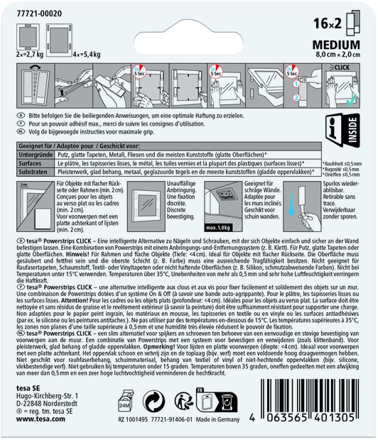 Decoraties zorgen voor de finishing touch in een stijlvol huis of werkomgeving. De tesa® Powerstrips CLICK bieden het ideale alternatief voor spijkers en maken het makkelijk om fotolijsten en andere vlakke wanddecoraties te bevestigen. Het unieke klikgeluid laat u weten dat het voorwerp goed op zijn plaats zit.