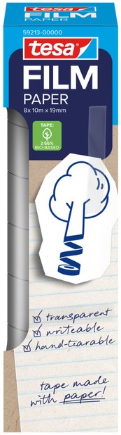 De klassieker wordt duurzamer: De nieuwe tesafilm® Paper is de eerste tesafilm® op papierbasis en is zowel uitstekend geschikt voor professioneel gebruik als voor privégebruik.