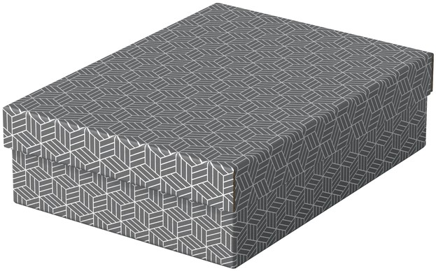 Stijlvolle en moderne kartonnen opbergdozen met afneembaar deksel, ideaal voor het verpakken van cadeaus of om direct opbergruimte in huis te creëren. Set van drie opbergdozen in hetzelfde formaat voor afzonderlijk gebruik, om opbergruimte op planken te creëren of in opbergkubussen voor het bewaren van kleinere spullen zoals foto's en persoonlijke documenten georganiseerd te houden en eenvoudig terug te vinden. Gebruik een lint om een ??cadeau in te pakken! Eenmaal geopend, kan het hergebruikt worden als opbergdoos om thuis spullen in op te bergen, een ideale 2 in 1 geschenk! Gemaakt van sterk, 100% gerecycled en 100% recyclebaar golfkarton dat FSC-gecertificeerd is. Het afveegbare oppervlak is afgewerkt met een tweekleurig geometrisch ontwerp om stijl toe te voegen aan je opbergruimte. Wordt platgevouwen geleverd en is snel en eenvoudig te monteren. De zijkanten vouwen zichzelf terug tijdens de montage voor extra stevigheid, waardoor de opbergdozen sterk blijven en de inhoud wordt beschermd.