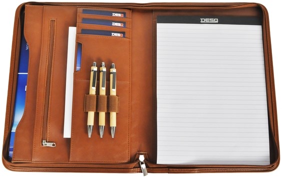 Schrijfmap DESQ A4 kunstleder met rits en handvatten zwart