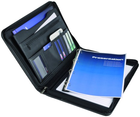 Door de uitneembare ringband kun je documenten goed georganiseerd meenemen naar een afspraak. Je kunt bijvoorbeeld een presentatie uit de map halen om te laten zien aan je gesprekspartner.