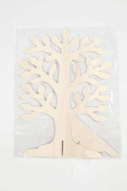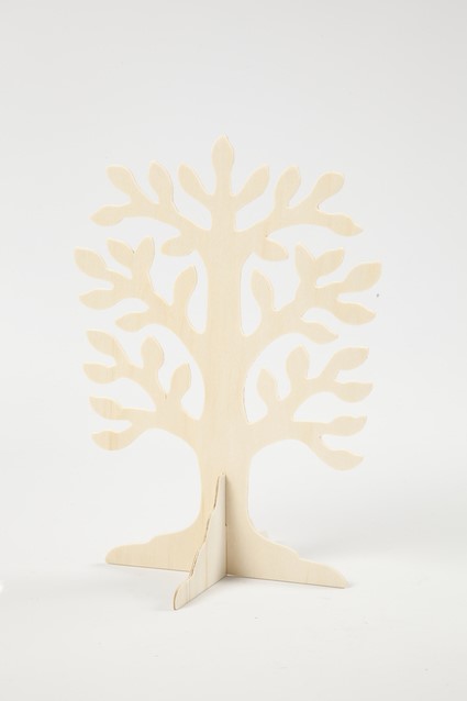Houten boom van ca 30cm hoog en ca 21,5cm breedt met grote kruin en kruisvoet zodat hij rechtop gezet kan worden. Ideaal voor decoratie met acrylverf, porseleinstiften en andere creatieve producten!