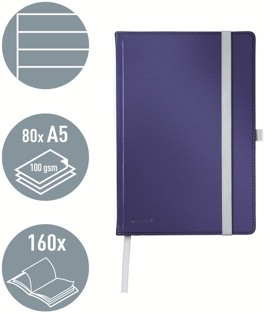 Klassiek notitieboek van hoge kwaliteit met harde kaft in moderne, zacht geborstelde afwerking en elegante kleur. Pennenhouder, elastieksluiting en een vak aan de binnenkant van de achterkaft maken de notitieboekjes nog functioneler.