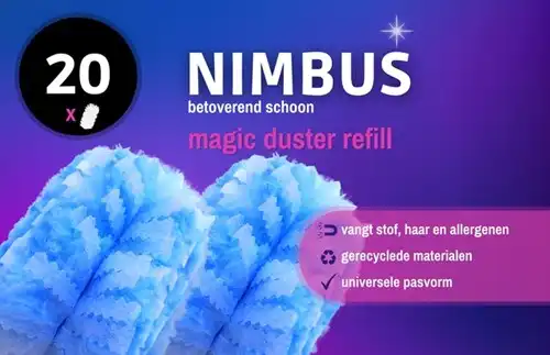 De NIMBUS Magic Duster heeft speciale eigenschappen. Door zijn structuur en statische lading worden stof, haren en allergenen als een magneet aangetrokken. De doekjes beschikken over unieke vezels die van vorm veranderen. Hierdoor kun je bij de moeilijkst bereikbare plekjes komen om van bijna elk oppervlak stof, haar en allergenen te verwijderen zonder het in huis te verspreiden.