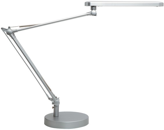 Modern design, met zijn matgrijze afwerking past deze lamp perfect op elk type bureau. Aangenaam asymmetrisch licht, ook na langdurig gebruik. Ideaal om te werken, lezen of studeren zowel thuis als op kantoor. Lichtsterkte instelbaar in 4 niveaus door een korte druk op de AAN / UIT-knop. Instellen van de kleurtemperatuur: door continu op de AAN / UIT-knop te drukken: 3000 K / 4000 K / 5000 K. Instelbaar in hoogte en flexibel dankzij de dubbele arm en drievoudige articulatie.