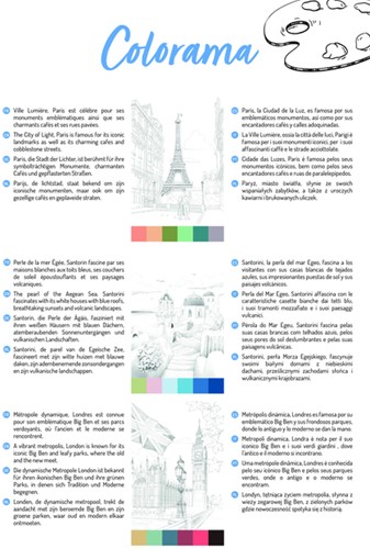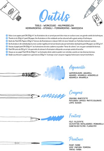 Of je nu fan bent van kleurpotloden, stiften, aquarel of andere verf, dit blok is je beste vriend! Het boek bevat zes prachtige illustraties, die elk drie keer worden herhaald. Zo krijg je de kans om verschillende kleurtechnieken en -stijlen te ontdekken. Er is ook een blad bijgevoegd met handige tips en een inspiratieblad om je creativiteit een boost te geven! Spiraalblok A4+ met 20 vellen Paint'ON papier van 250g (6 illustraties x3 + 1 blad met accessoires + 1 inspiratieblad). De vellen zijn microperforeerd en afscheurbaar (afmeting na afscheuren: A4). Omslag in gekorreld papier voorzien van ophangstrip.