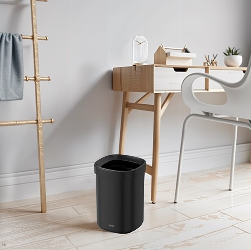 DESQ afvalemmers zijn ontworpen voor gebruiksgemak, duurzaamheid en stille werking. Twee speciaal ontworpen randen houden de afvalzak op zijn plaats en verbergen hem voor een netter en schoner uiterlijk. Gemaakt van hoogwaardig metaal, voorzien van een onzichtbare vingerafdrukbestendige coating om de verspreiding van bacteriën te voorkomen.
