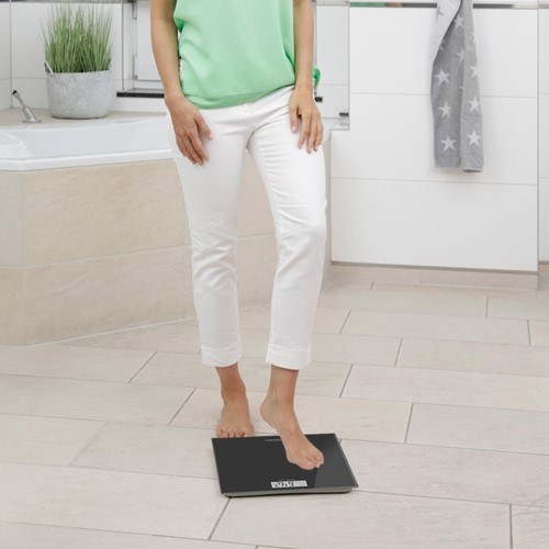 De glazen personenweegschaal PS 400 van medisana, een van de toonaangevende specialisten op de thuiszorgmarkt, is een betrouwbare partner voor dagelijkse gewichtscontrole. Dankzij het bijzonder platte design is de medisana PS 400 glazen weegschaal een moderne blikvanger voor elke badkamer.