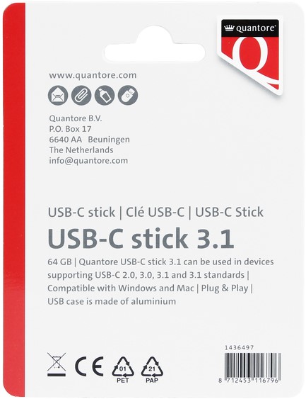 USB stick 3.1 Quantore USB-C 32GB zilver