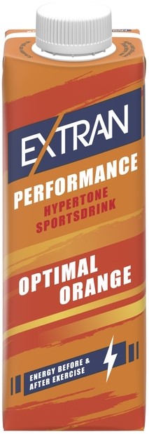 Extran Optimal Orange is een hypertone sportdrank. De koolhydraten uit Extran Optimal Orange dragen bij aan het herstel van de spieren na inspanning.