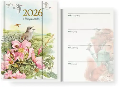 Deze Hallmark Marjolein Bastin agenda is gebonden met een handige magneetsluiting. De agenda heeft een formaat van 105 x 148 mm en een indeling van 1 week op 2 pagina's. De designs van Marjolein Bastin zijn zo gedetailleerd, dat haar tekeningen soms levensecht lijken. De bekende natuurtekenares focust zich op de kleine dingen, zoals de details van bloemen, insecten of vogels. Haar tekeningen zijn wereldberoemd en heel herkenbaar dankzij Marjoleins verfijnde signatuur. De sfeervolle natuurtekeningen van Marjolein Bastin sieren de nieuwe agenda’s en kalenders voor 2026.