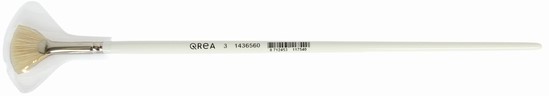 Waaierpenseel Qrea varkenshaar nr. 3 – Ø 35mm De waaiervormige penseel van Qrea is een effectief instrument voor kunstenaars die werken met olie- of acrylverf. Dankzij de natuurlijke varkensharen biedt dit penseel een onzichtbare verfopname en uitstekende spreiding, ideaal voor het creëren van fijne structuren en zachte overgangen. De lange, witte houten steel ligt comfortabel in de hand en zorgt voor nauwkeurige controle tijdens het schilderen. Door de hoge elasticiteit en vormvastheid is de penseel kwaliteit, zelfs bij intensief gebruik. Kenmerken: