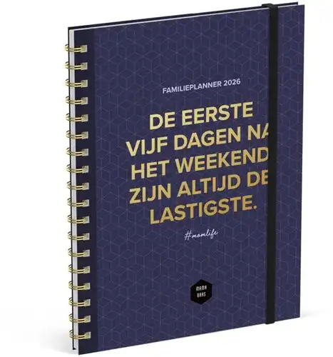 Met deze vrolijke Nederlandstalige Mama Baas wire-o familieplanner, hou je al je afspraken overzichtelijk bij de hand, en heb je dankzij het grotere formaat plaats genoeg om alles te noteren! In deze planner is ruimte voor 5 gezinsleden en hun afspraken, hobby's en uitstapjes, die je met de bijhorende coole stickers kan aanduiden. Dankzij de wire-o ligt deze agenda mooi open en kan je makkelijk op beide pagina's schrijven. Binnenin vind je full coulour pagina's, met telkens 7 dagen op 2 pagina's, ruimte voor nietvergeten en een weekmenu. Het binnenwerk is in het Nederlands. De harde kaft heeft een matte finish en een elastische sluiting.