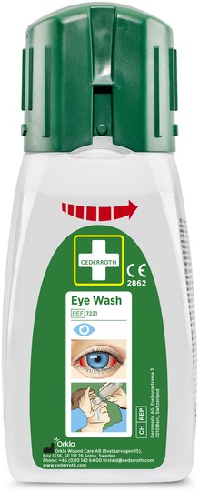 Een gemakkelijk te hanteren flacon met ergonomisch oogbad en royale vloeistofstroom. Snel en eenvoudig te openen. Wordt met een enkele handgreep geopend. Draaien en de flacon is open.