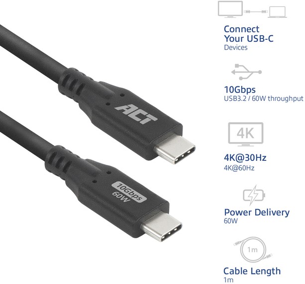 USB 3.2 | 10Gbps | USB Type-C® | 60W | 4K@60Hz | 1 meter.