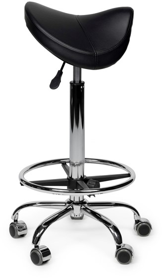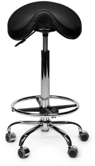 Zadelkruk Office Premium hoog met voetring harde wielen zw