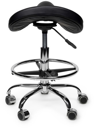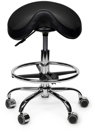 Zadelkruk Office Premium hoog met voetring harde wielen zw