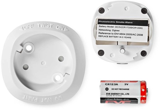 De rookdetector is heel eenvoudig te installeren, met de meegeleverde 3M-tape of de schroeven. De meegeleverde lithiumbatterij werkt 5 jaar voordat hij toe is aan vervanging, waarvoor je ook een melding via je telefoon ontvangt.