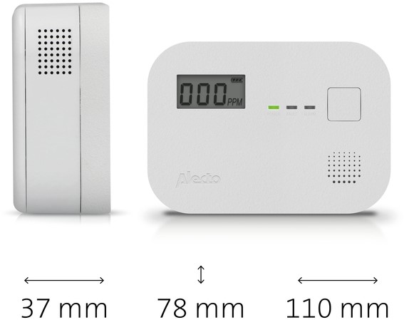 Ook waarschuwing bij lagere concentratie koolmonoxide: Koolmonoxidemelders geven de concentratie koolmonoxide weer in ppm. Ppm staat voor parts per million, oftewel aantal deeltjes op 1 miljoen deeltjes. Wettelijk is het verplicht dat CO-melders alarm geven bij een gedetecteerde concentratie koolmonoxide vanaf 50 ppm gedurende 60 minuten. Ook wanneer je slaapt zal een alarm van >85dB niet onopgemerkt blijven. Echter ook een langdurige aanwezigheid van een lagere concentratie CO is schadelijk voor de gezondheid. De Alecto COA3910 koolmonixidemelder geeft al een waarschuwing wanneer gedurende 60 minuten een concentratie van 30 ppm wordt gedetecteerd.