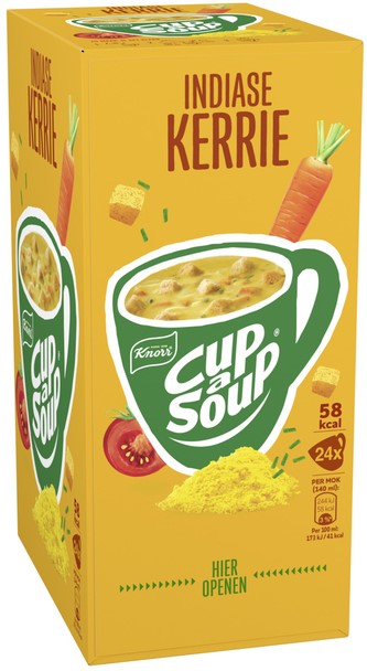 In een verpakking Cup-a-Soup Indiase Kerrie zitten 24 heerlijke zakjes Cup-a-Soup.