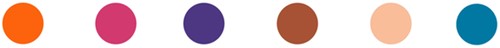 Kleuren: oranje, cyclaam, violet, turquoise, bruin en perzik.
