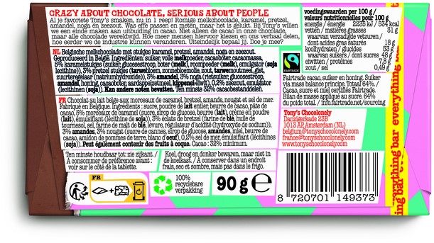 Chocolade Tony's Chocolonely melk everything reep 90 gram