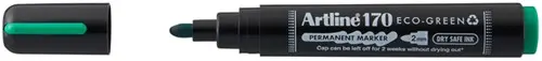 Ecologische Permanent Marker gemaakt uit 65.6% gerecycled materiaal met Dry-Safe inkt die 2 weken zonder dop kan blijven zonder uit te drogen. Konische punt 2mm. Kleur : groen. Gecertifieerd door Eco Mark-label.