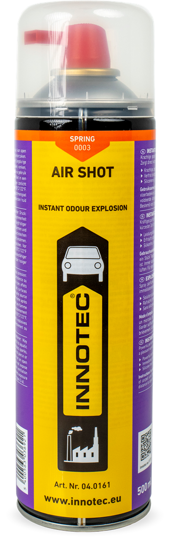 Air Shot is het aangewezen product als eerste oplossing voor het elimineren van hinderlijke geuren in auto’s, vrachtwagens, bussen, publieke ruimtes (kleedkamers, hotelkamers, B&B, …) en private ruimtes.
