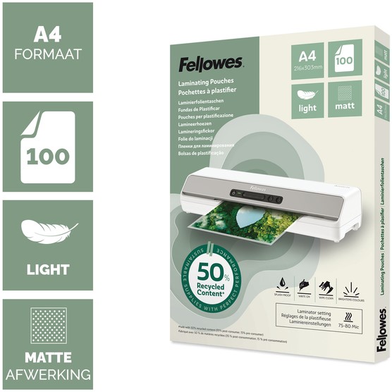 Lamineerhoes Fellowes A4 light 50% gerecycled glans 100stuks