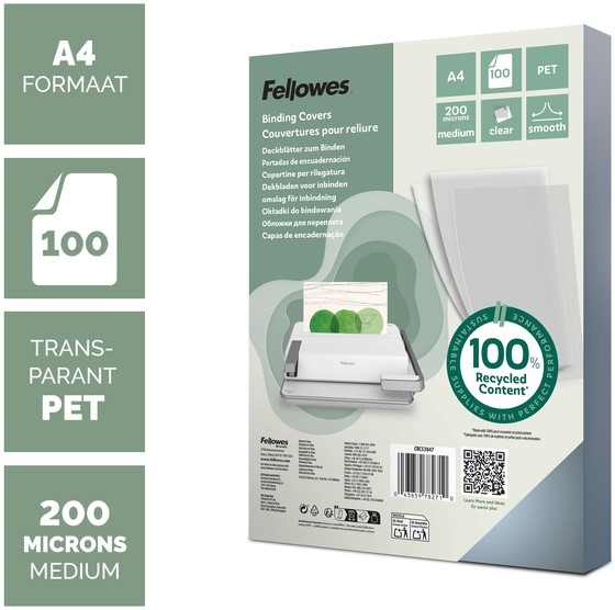Voorblad Fellowes A4 PET 180micron recycled 100 stuks
