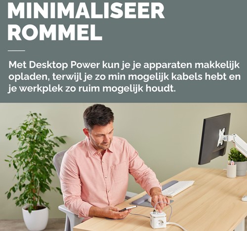 Strakke en moderne uitstraling met gemakkelijke toegang tot stroom. Maximaliseer efficiëntie en bespaar waardevolle ruimte voor al je devices.