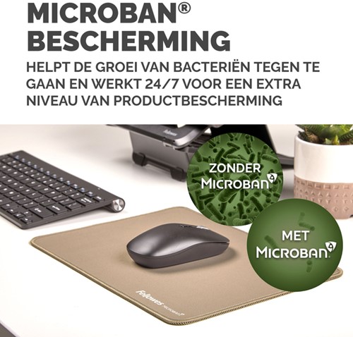 De ingebouwde Microban®-bescherming helpt de groei van bacteriën te voorkomen en werkt 24/7 voor een extra bescherming van het product. Gemaakt van 83% gerecycled materiaal. De antislipbasis houdt de muismat de hele dag op zijn plaats. Duurzame platte stiksels voorkomen rafelen. Gemaakt om lang mee te gaan, met 5 jaar garantie.