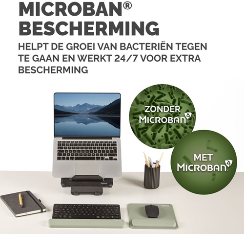 De HEX Cushion Technology™, waarvoor patent is aangevraagd, zorgt voor een gelijkmatige ondersteuning en supercomfort tijdens het muisgebruik. De zachte, stofwerende polssteun heeft een mooie afwerking en zorgt voor een soepele muiservaring. De ingebouwde Microban®-bescherming helpt de groei van bacteriën tegen te gaan en werkt 24/7 voor extra bescherming van het product.