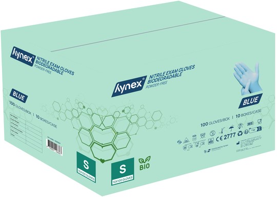 Duurzaam & comfortabel: biologisch afbreekbare nitril wegwerphandschoenen van Hynex Ontdek de nieuwste toevoeging aan het Hynex-assortiment: biologisch afbreekbare nitril wegwerphandschoenen. Met de introductie van deze biologisch afbreekbare handschoenen zetten we een logische stap in onze duurzame koers – zonder concessies te doen aan het ultieme draagcomfort en de optimale bescherming. En zoals je van Hynex gewend bent, geniet je nog steeds van de beste prijs-kwaliteitverhouding. Kies voor milieuvriendelijk gemak, zonder in te leveren op prestaties! Biologisch afbreekbare nitril wegwerphandschoenen De biologisch afbreekbare nitrilhandschoenen vormen een duurzaam alternatief. Dankzij de innovatieve toevoeging van bio-agentia in de formule behouden ze dezelfde betrouwbaarheid als gewone nitril wegwerphandschoenen. Dit betekent dat ze, zodra ze in contact komen met specifieke micro-organismen in de bodem, op natuurlijke wijze worden afgebroken zonder schadelijke resten achter te laten. Voor jouw gebruiksgemak Gemaakt van 100% biologisch afbreekbaar nitril, zijn deze handschoenen poedervrij en oppervlakte-gechloreerd voor extra comfort. Ze bieden een superieure sterkte, verbeterde lekbestendigheid en uitstekende chemische spatbescherming. Nitril heeft als eigenschap dat dit goed vormt naar de hand tijdens gebruik. Hierdoor heb je een goede grip, ook bij het werken in of met natte of geoliede producten of omgevingen. De getextureerde vingertoppen zorgen voor een betere grip bij zowel natte als droge omstandigheden, terwijl ze ook zorgen voor een optimale tastgevoeligheid waardoor ze een precieze aanraking mogelijk maken. Bovendien bieden deze handschoenen betrouwbare bescherming tegen bacteriën en schimmels. De gekrulde rand extra biedt extra gemak bij het aan- en uittrekken, zorgt ervoor dat vloeistoffen niet langs de arm lopen en voorkomt het terugdraaien van de handschoenen. Bovendien zijn ze zowel links als rechts te dragen Sterk en betrouwbaar Nitril wegwerphandschoenen zijn sterker dan latex, rubber of vinyl handschoenen. Ze voorkomen besmettingsgevaar tijdens werkzaamheden waar hygiëne voorschriften belangrijk zijn. Werk je in de voedingsmiddelenindustrie, laboratoria, horeca of zorgsector? Dan zijn deze handschoenen de beste keuze! Nitril voor iedereen Verminder de kans op een latex allergie door puur en alleen nitril handschoenen te gebruiken. Tijdens het gebruik wordt huidirritatie voorkomen doordat de nitril handschoenen latex- en poedervrij zijn. Let op: niet steriel en geschikt voor eenmalig gebruik. Draag wegwerphandschoenen niet te lang, probeer ze elk 2 uur te vervangen voor een nieuw paar. Specificaties:?
