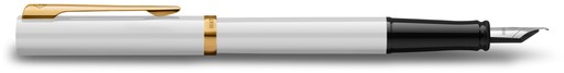 Maak indruk met Waterman Impression, waar verfijnd Frans vakmanschap en zelfverzekerde elegantie samenkomen. De slanke huls en dop, afgewerkt met glanzende witte lak, komen samen om een elegante en blijvende indruk te creëren. De Impression is voorzien van een brede, met goud gecoate dop met ring en de kenmerkende dubbelvertakte clip van Waterman, en is ontworpen om vanaf de allereerste beweging tot gedurfde expressie te verleiden. De roestvrijstalen penpunt, gegraveerd met Watermans iconische gekrulde 'W', zorgt voor een soepele, nauwkeurige inktstroom, ideaal voor dagelijks gebruik. Met zijn zorgvuldig uitgebalanceerde gewicht ligt de pen comfortabel in de hand, waardoor een gevoel van evenwicht en controle wordt geboden. Impression is vervaardigd in Frankrijk en weerspiegelt meer dan 140 jaar vakmanschap van Waterman. Hij wordt geleverd in de kenmerkende geschenkverpakking van Waterman en is het ideale pronkstuk - voor uzelf of iemand die altijd een blijvende indruk achterlaat.