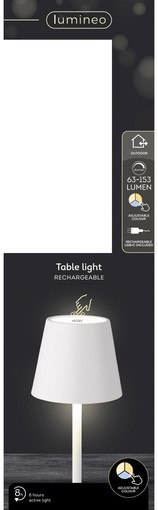 Tafellamp Lumineo led oplaadbaar steady binnen wit