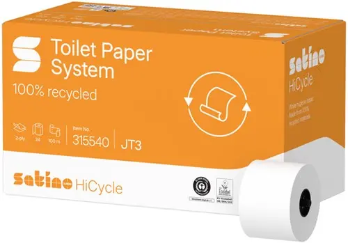 Toiletpapier Satino JT3 HiCycle systeemrol 2-laags 24x100m wit 315540