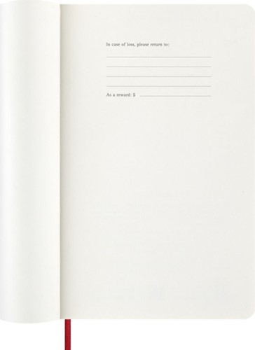 De Moleskine Weekly Notebook Planner is gedateerd van januari tot december. Het is een handige en veelzijdige planner die de vrijheid van een notitieboekje bevat en is ingedeeld met de afspraken van de week aan de linkerkant en een gelinieerde pagina voor notities op de rechter bladzijde. Het notitieboekje is beschikbaar met een harde of een zachte kaft met afgeronde hoeken en een elastische sluiting. - Harde of Zachte kaft - Afgeronde hoeken - Elastische sluiting - Moleskine ivoorkleurig papier - Papiergewicht: 70 g/m² - Handige tools: planning, tijdzones, internationale metingen, toegangscodes en vluchtduur - Uitbreidbaar binnenvak passend bij de kleur van het notebook - "In geval van verlies" label gedrukt op het schutblad - Bijpassende bladwijzer voor lint - Herbruikbare paperband B-SIDE met extra gedrukte tools - 180° liggende opening - Moleskine srl. creëert en verkoopt FSC-gecertificeerde producten