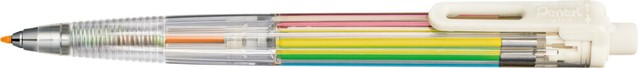 De Pentel Multi 8 is een vulpotlood met 8 verschillende potloodstiften. Selecteer met de draaibare clip de juiste kleur en klik op de knop om deze los te laten. Bevat 8 gekleurde vullingen in de kleuren: rood, blauw, bruin, oranje, geel, lichtgroen, lichtblauw en roze. Perfect voor ontwerpen en illustreren. Lijndikte 2 mm.