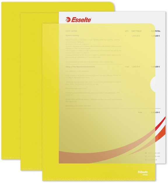 Insteekmap L-model Esselte standaard A4 0.11mm PP geel 100 stuks