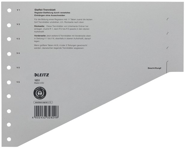 Scheidingsbladen Leitz A4 karton 230gr 6-gaats grijs 100 stuks