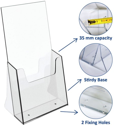 Folderbakje voor een glasheldere presentatie van folders, catalogi en prijskaarten.