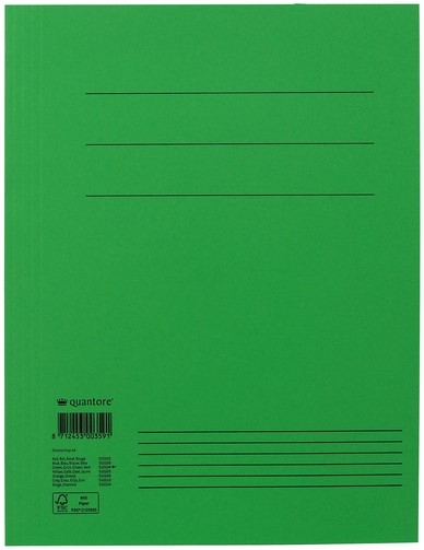 Door (leverproblemen) leveren we momenteel een alternatief zonder opdruk uit. Afbeelding wijkt af van de werkelijkheid Kies voor duurzaamheid en kwaliteit met de dossiermap Quantore A4 250gr groen. Deze stevige map is vervaardigd uit 250 grams gerecycled manillakarton en biedt optimale bescherming voor je documenten. Dankzij de drie stofkleppen blijven losse papieren netjes op hun plaats, ideaal voor gebruik in archieven, kantoren of thuis. De map voldoet aan de Blauwe Engel- en FSC-certificeringseisen, wat garant staat voor milieuvriendelijk materiaalgebruik. Met het A4-formaat is de map perfect afgestemd op standaarddocumenten. Verpakt per 5x10 stuks in een omdoos – klaar voor intensief gebruik. Kenmerken: