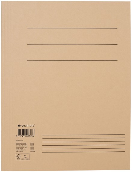 Door (leverproblemen) leveren we momenteel een alternatief zonder opdruk uit. Afbeelding wijkt af van de werkelijkheid Kies voor duurzaamheid en kwaliteit met de dossiermap Quantore A4 250gr chamois. Deze stevige map is vervaardigd uit 250 grams gerecycled manillakarton en biedt optimale bescherming voor je documenten. Dankzij de drie stofkleppen blijven losse papieren netjes op hun plaats, ideaal voor gebruik in archieven, kantoren of thuis. De map voldoet aan de Blauwe Engel- en FSC-certificeringseisen, wat garant staat voor milieuvriendelijk materiaalgebruik. Met het A4-formaat is de map perfect afgestemd op standaarddocumenten. Verpakt per 5x10 stuks in een omdoos – klaar voor intensief gebruik. Kenmerken: