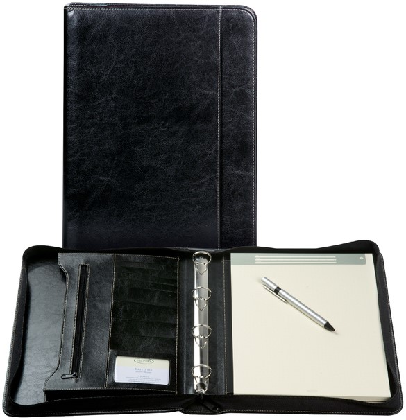 Schrijfmap van der Spek A4 buffelleer 4-rings 25mm O-mech + rits zwart